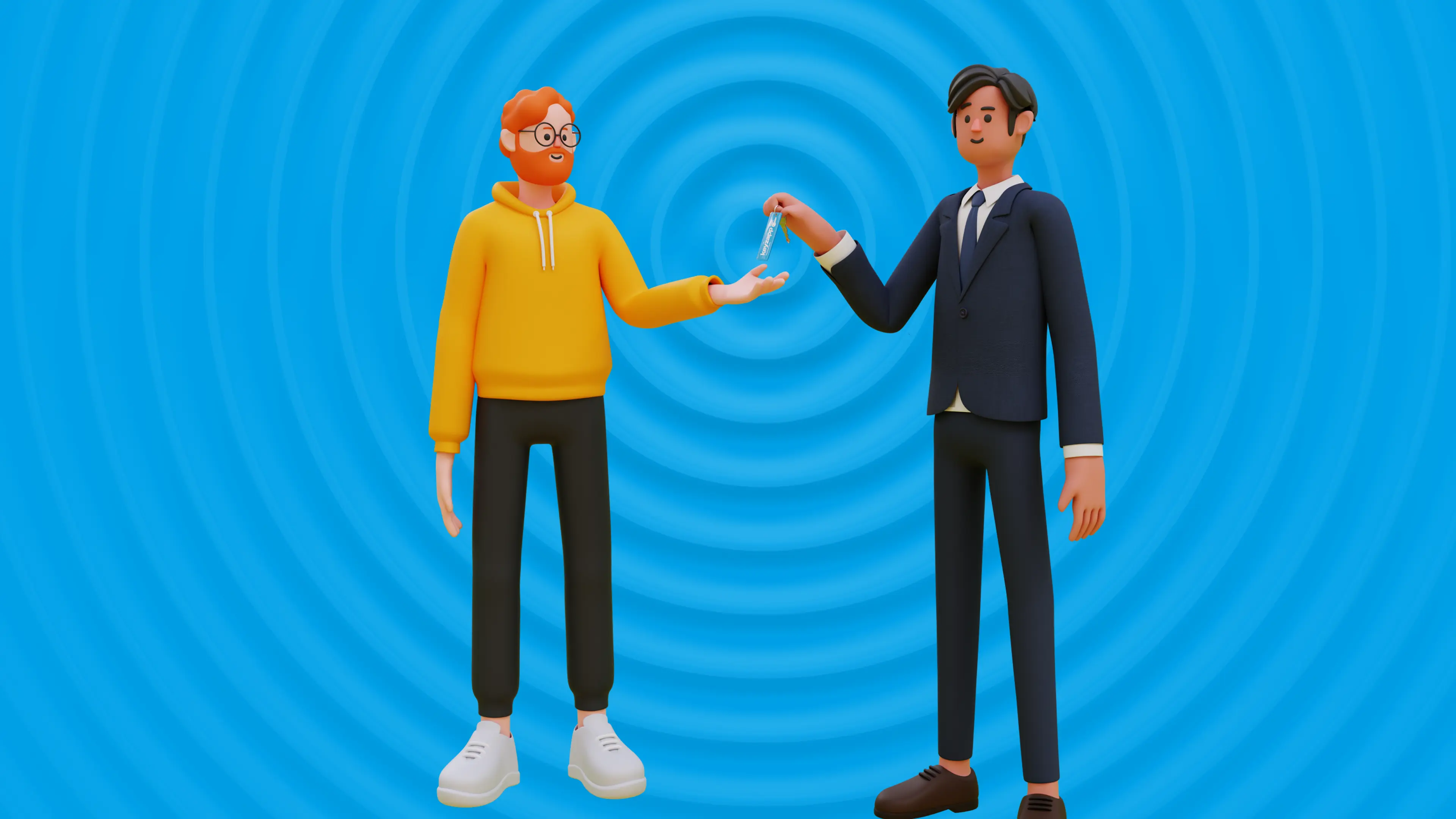 We built a brand world centred around approachability, clarity and character - designed to make people feel at ease with their keys. The creative was inspired by a modern take on the zen pebble ripple, a symbol of calm that also nods to Keyzapp’s tech and zapping iconography. More than forty custom CGI characters and 3D assets turned complex software into something simple, engaging and memorable. Bright, confident colours and playful language helped the brand stand apart in an often serious and functional category.